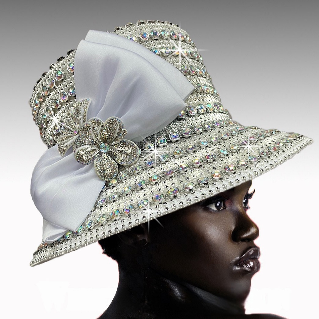 Style: Church Hat 2520 FABERGE-WHT-AB ( Opulent Jewel Encrusted Bucket )