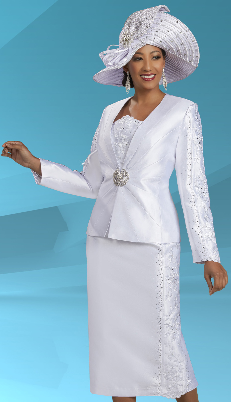 Style: Ben Marc 48479-WHT-H ( 3pc Silk Lace Set )-Hat