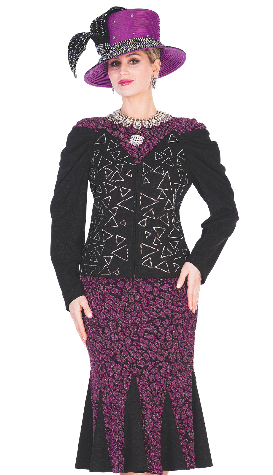 Style: Champagne Italy 5690-H ( 2pc Metallic Knit Womens Church Suit With Pleated Skirt And Geometric Pattern )-Hat