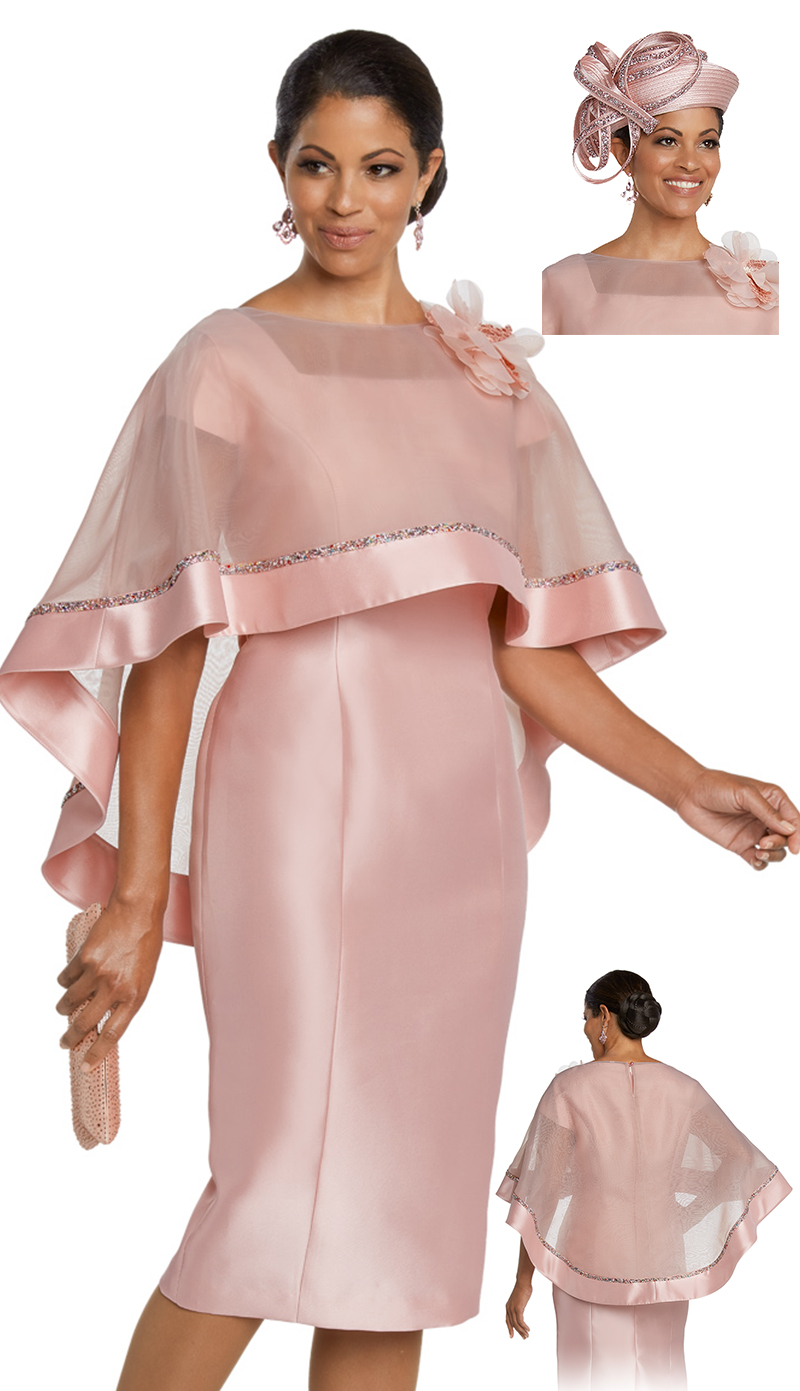 Style: Donna Vinci 11783-DR ( 2pc Exclusive Silk Church Dress Designed With Multicolored Rhinestone Trim, Lace Flower Brooch And A Detachable Cape )-Hat