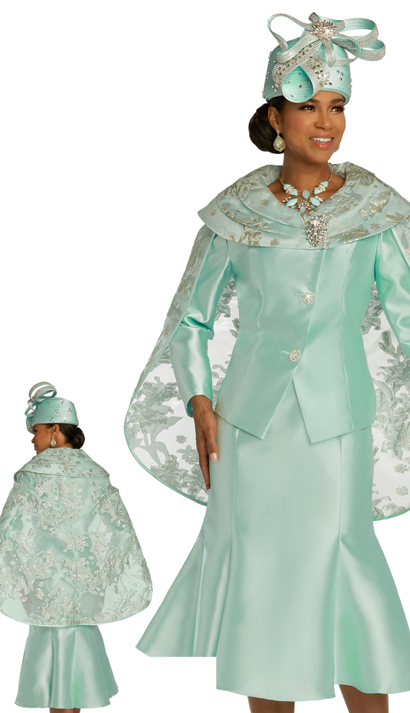 Style: Donna Vinci 5693 ( 2pc Novelty And Silk Ladies Church Suit With Embroidered Cape, Detachable Rhinestone Broach And Rhinestone Buttons )-Hat