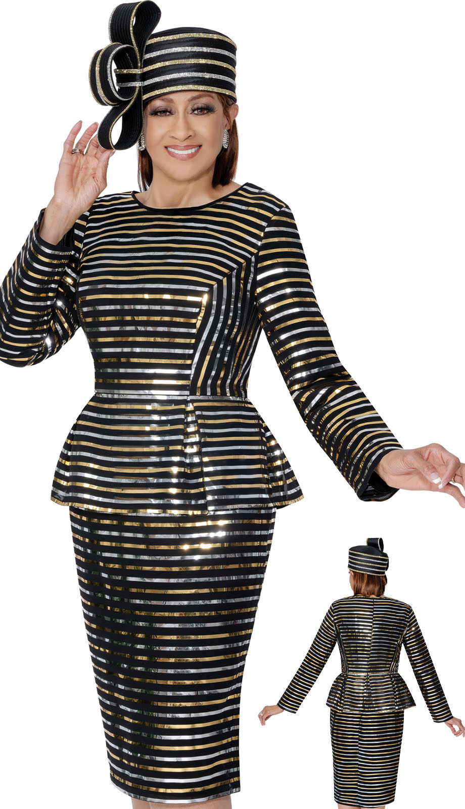 Style: Dorinda Clark Cole 309821-BLK-H Womens Church Suit-Hat