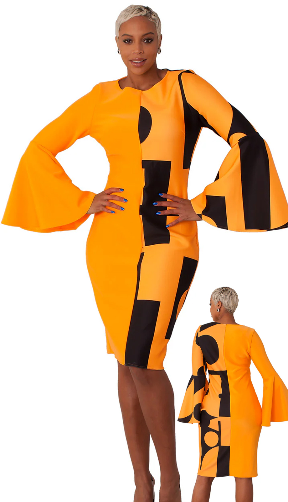 Style: For Her 82062-BKY-IH ( 1pc Colorblock Bell Sleeve Midi Dress )
