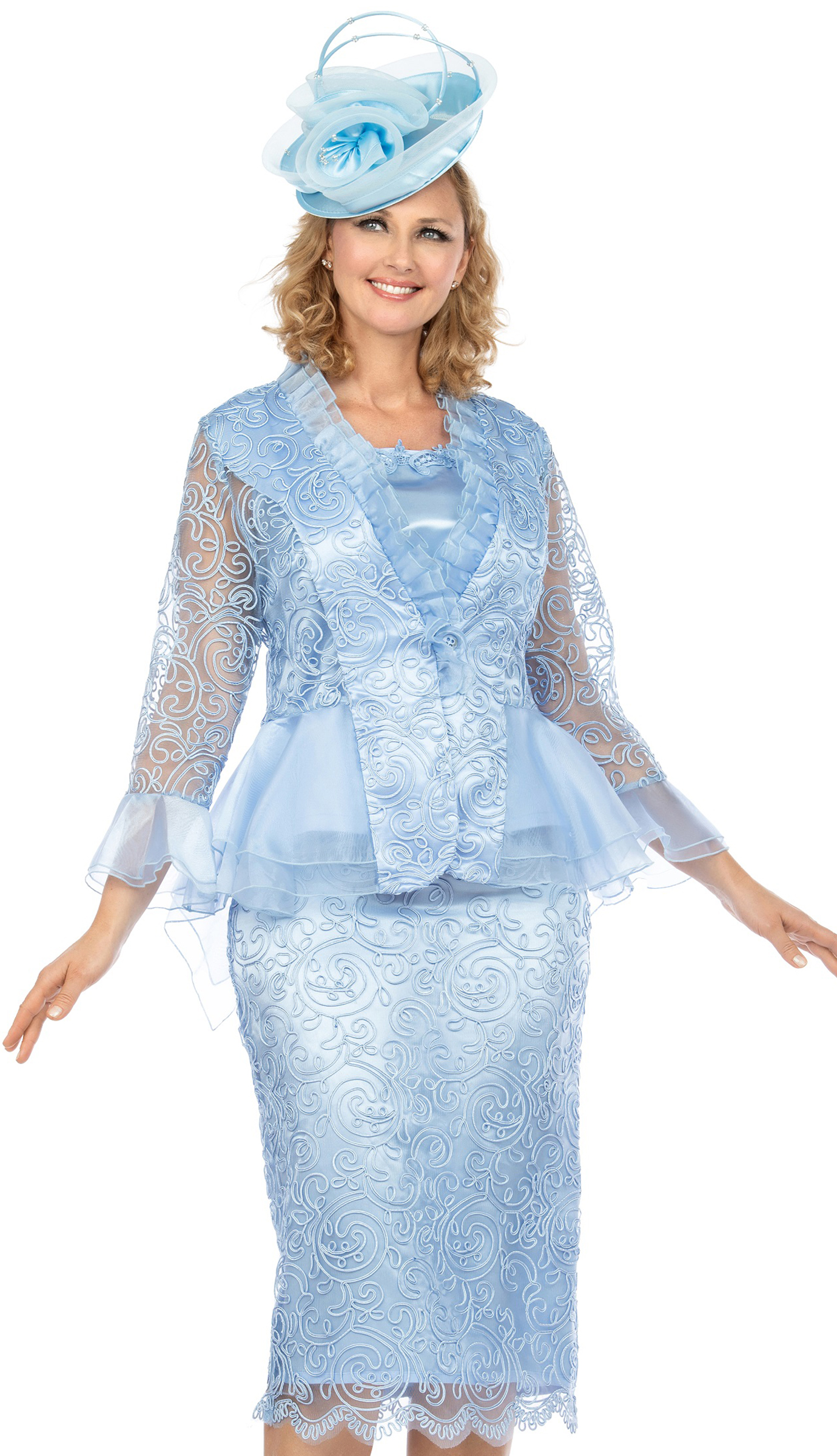 Style: Giovanna 0929-BLU ( 3pc Silk Look With Lace Womens Church Suit With Organza Trim ) - Hat