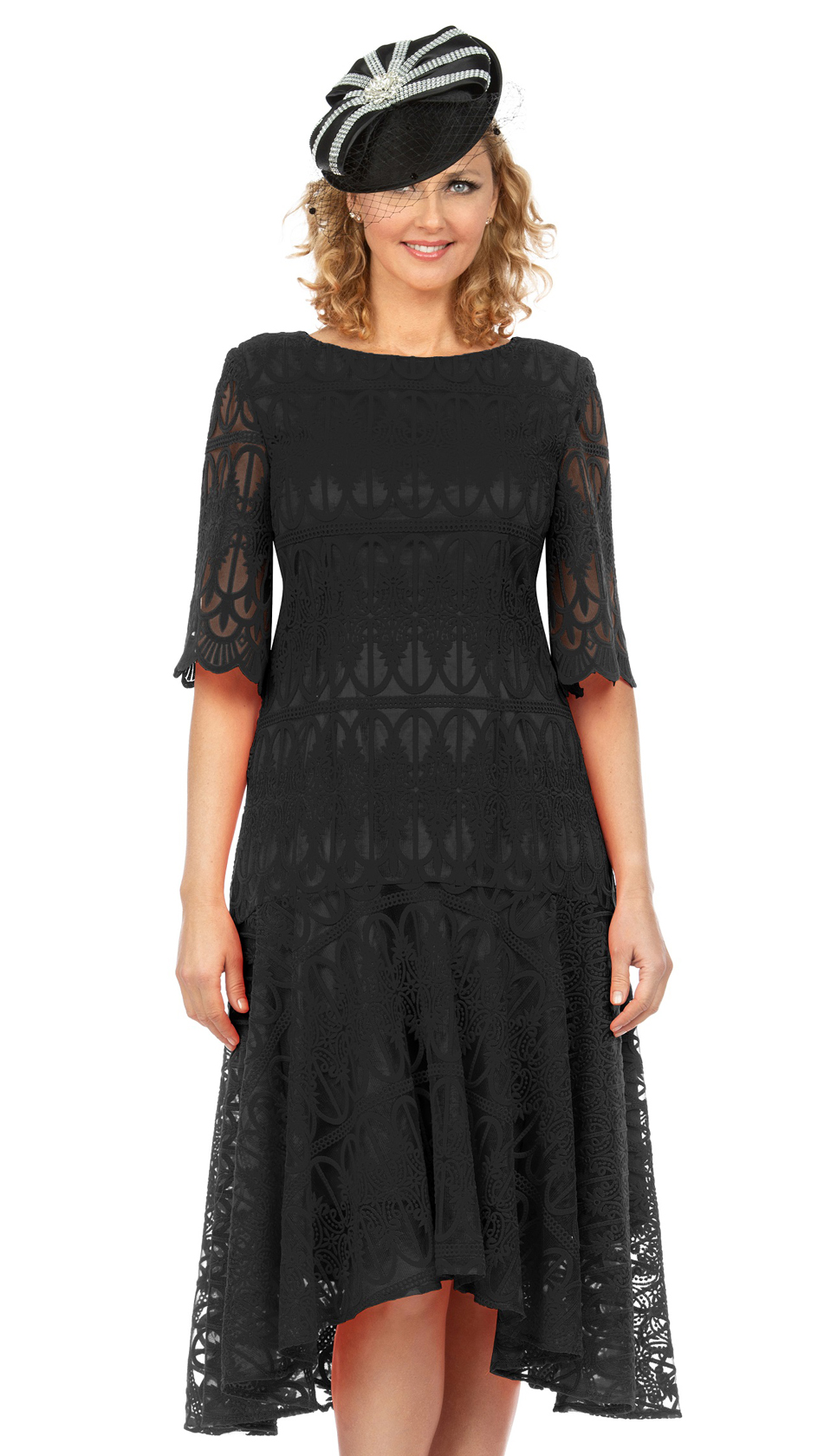 Style: Giovanna D1525-BLK ( 1pc Lace Elegant Hi-Lo Flare Dress For Church ) - Hat