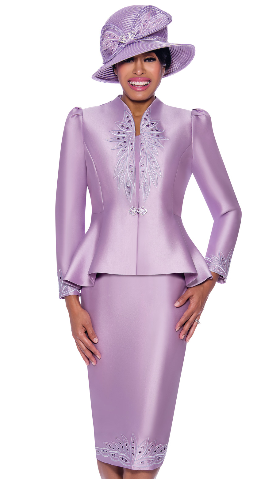 Style: GMI 8052-L ( 3pc Silk Look Ladies Suit For Sunday With Beautiful Laser Cut And Embellished Design On Jacket And Skirt )-Hat