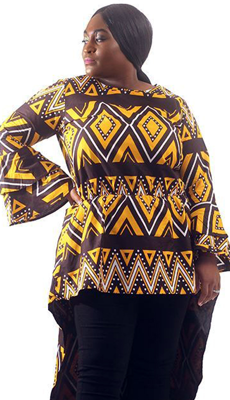 Style: Heritage C-WH677-AS ( African Mud Print Zipper Back Hi-Lo Top )