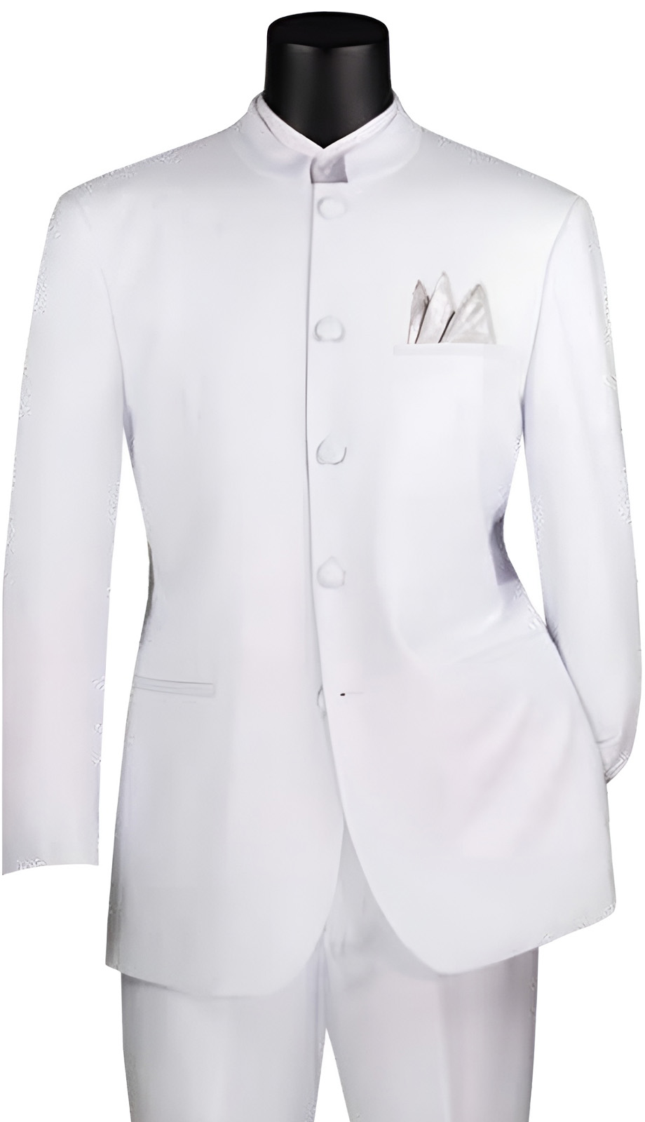 - Luxurious Wool Feel Solid Color Single Breasted Regular Fit Banded-Collar 2pc Suit