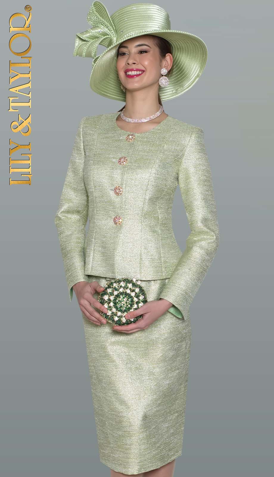- 2pc Elegant Shimmer Novelty Skirt Suit With Rhinestone Buttons