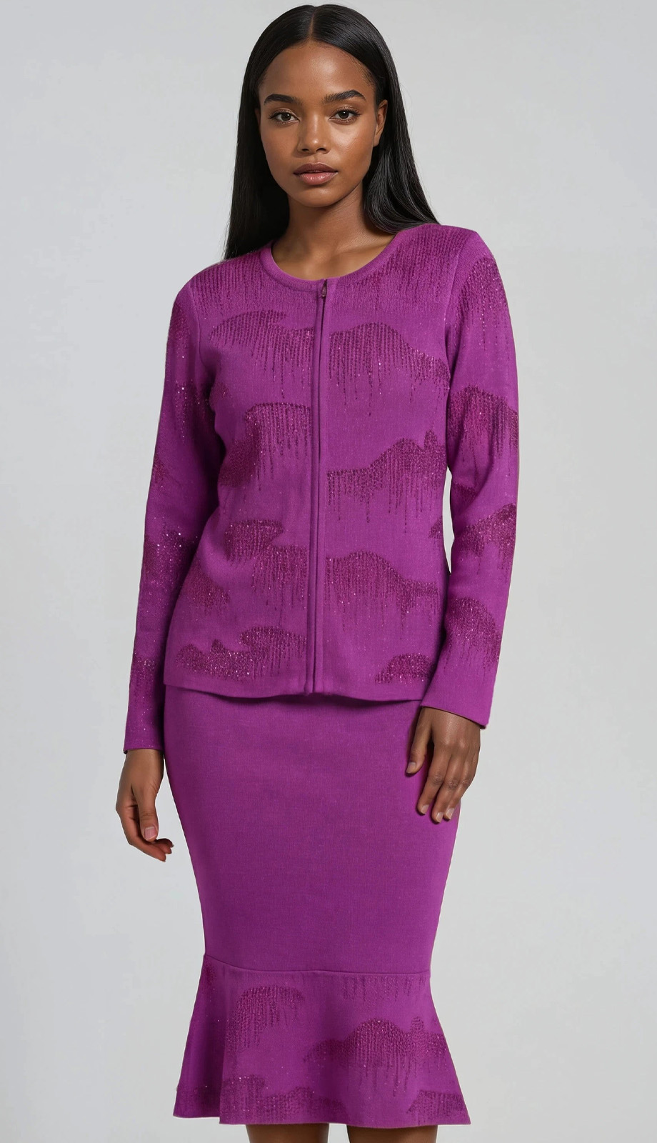 - Featuring Sleek Zip-Front Jacket And Flared Hem Skirt