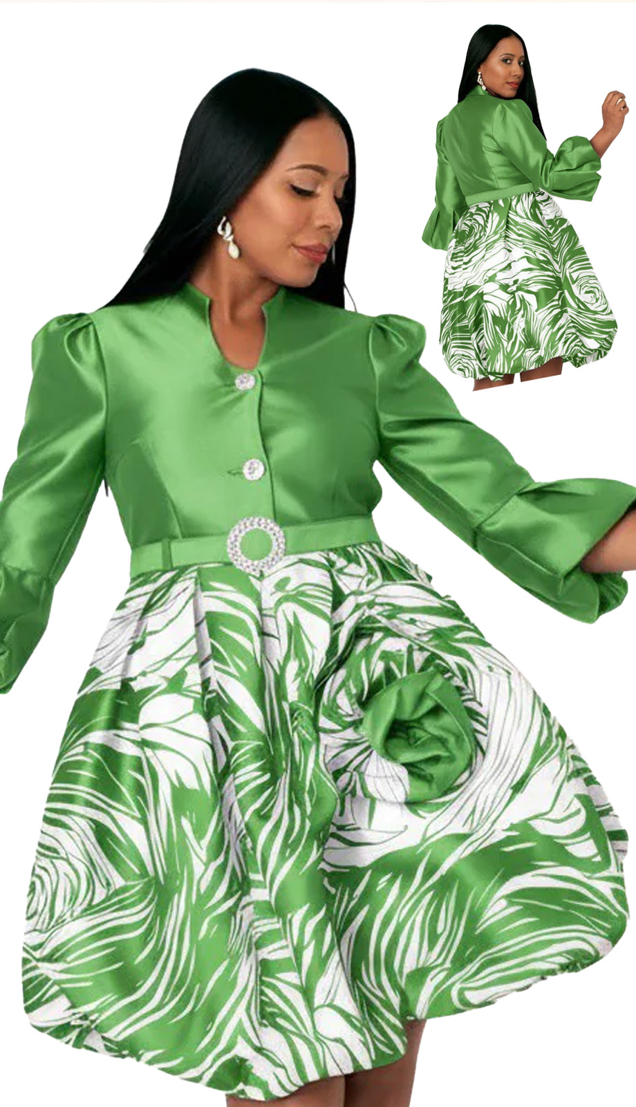 - Features Structured Bodice, Puff Sleeves, And Dramatic Fit-And-Flare Skirt With Rosette Detailing