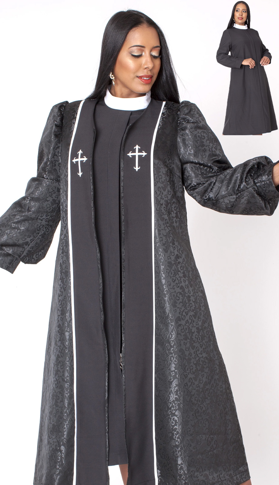 • 2pc Brocade Clergy Robe With Structured Inner Dress
