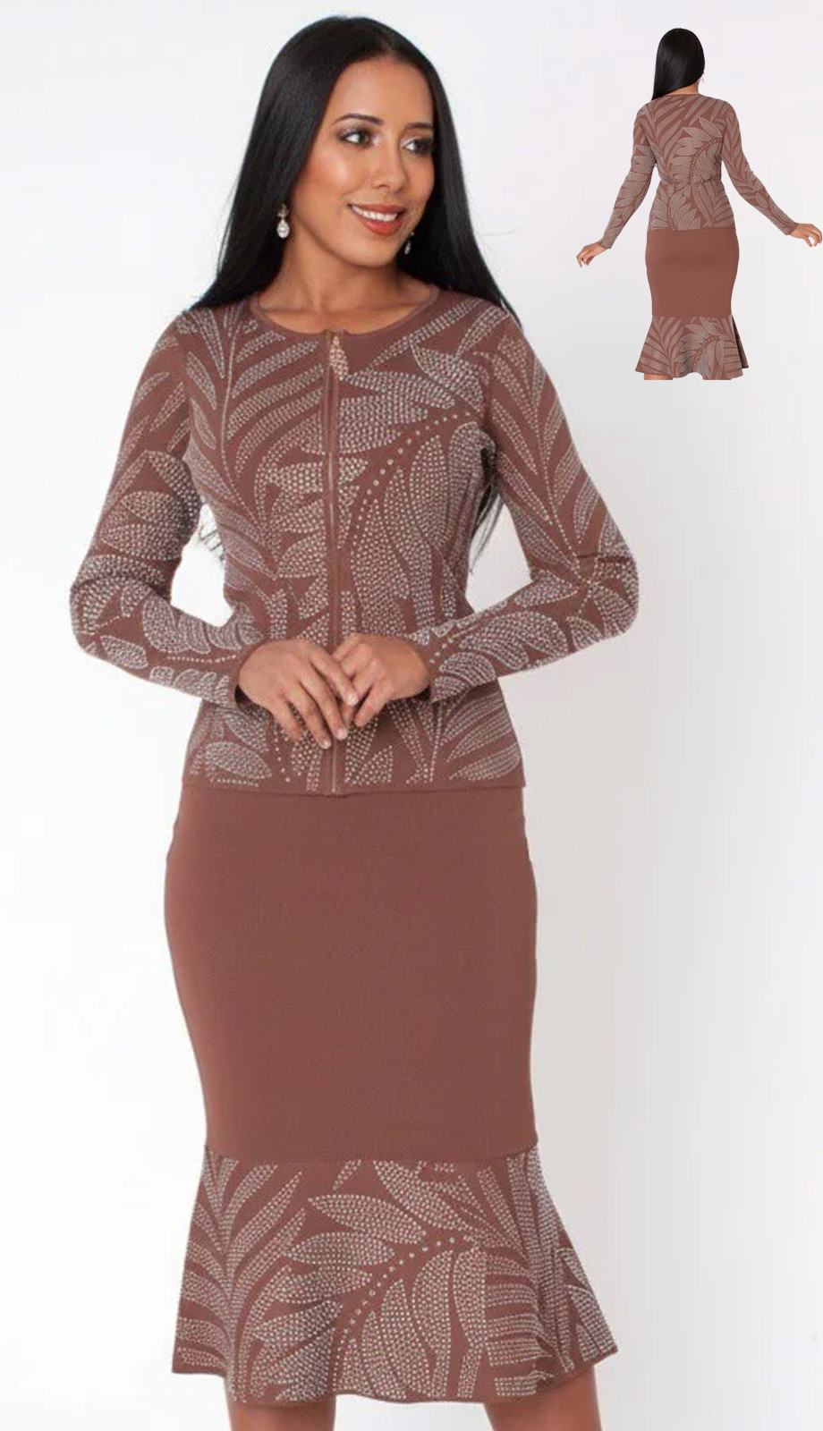 - 2pc Elegant Knit Suit Set Features Long Sleeve Rhinestone Design
