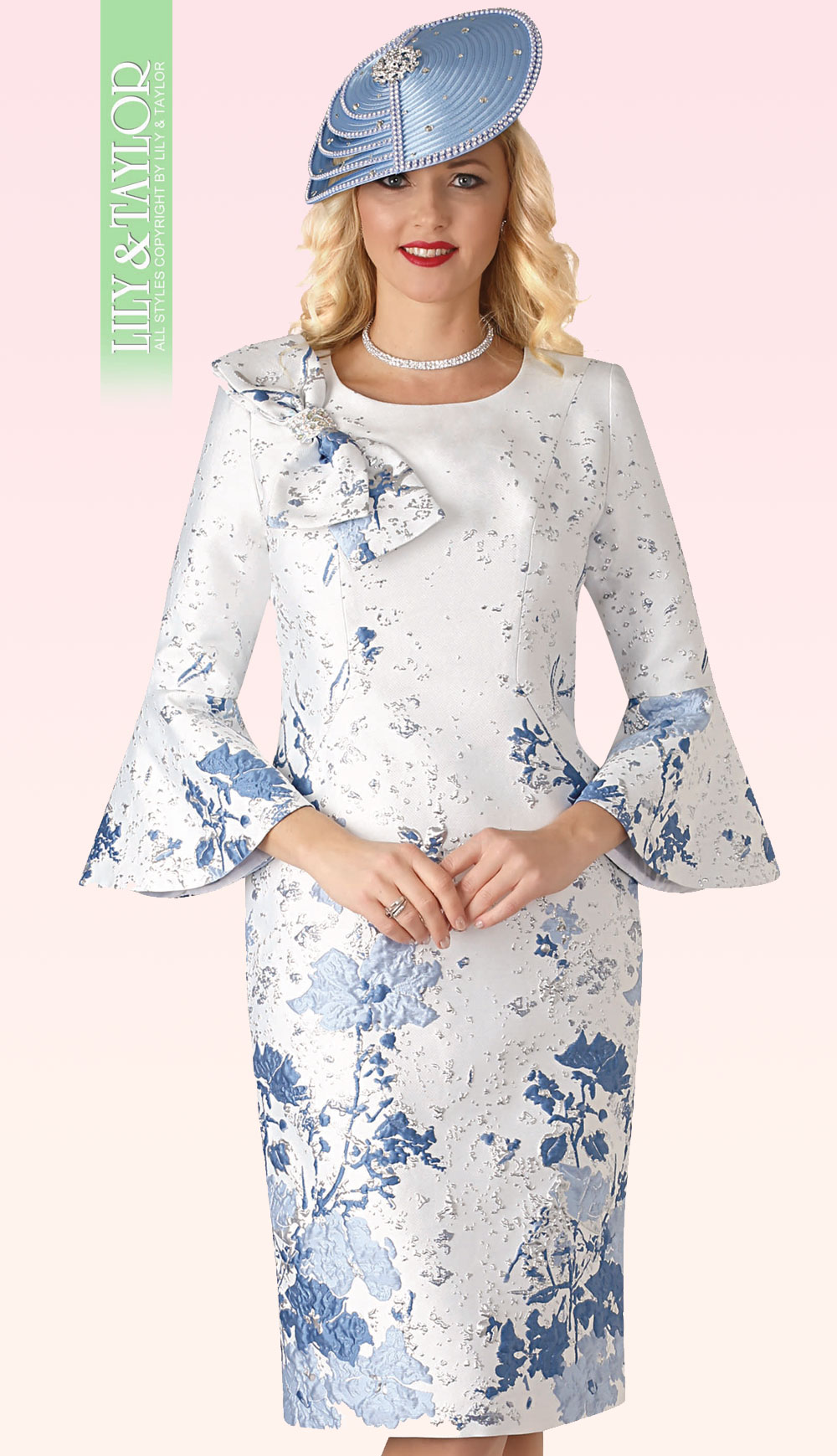 Style: Lily And Taylor 4356-WB ( 1pc Novelty Womens Church Dress With Embroidery Pattern Bow Tie Trim And Flared Sleeves ) - Hat