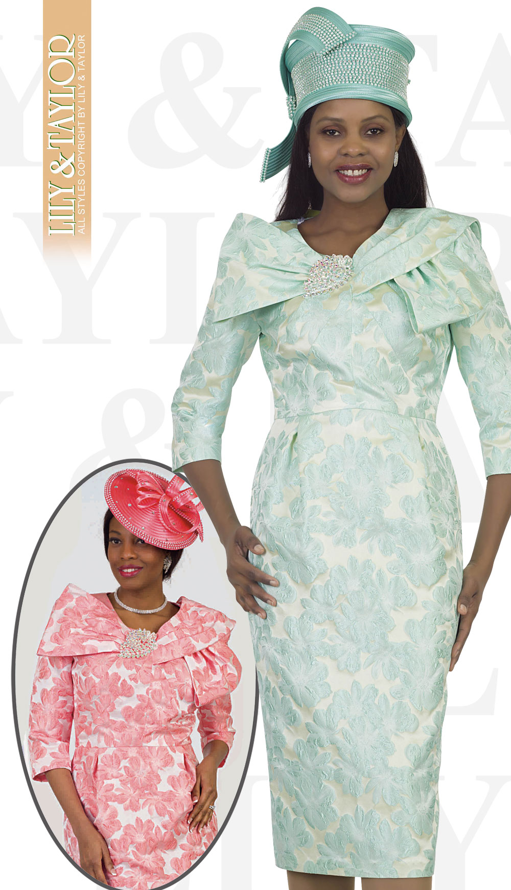 Style: Lily And Taylor 4494-MI ( 1pc Novelty Church Dress With Draped Shoulder Accent And Jeweled Brooch )-Hat