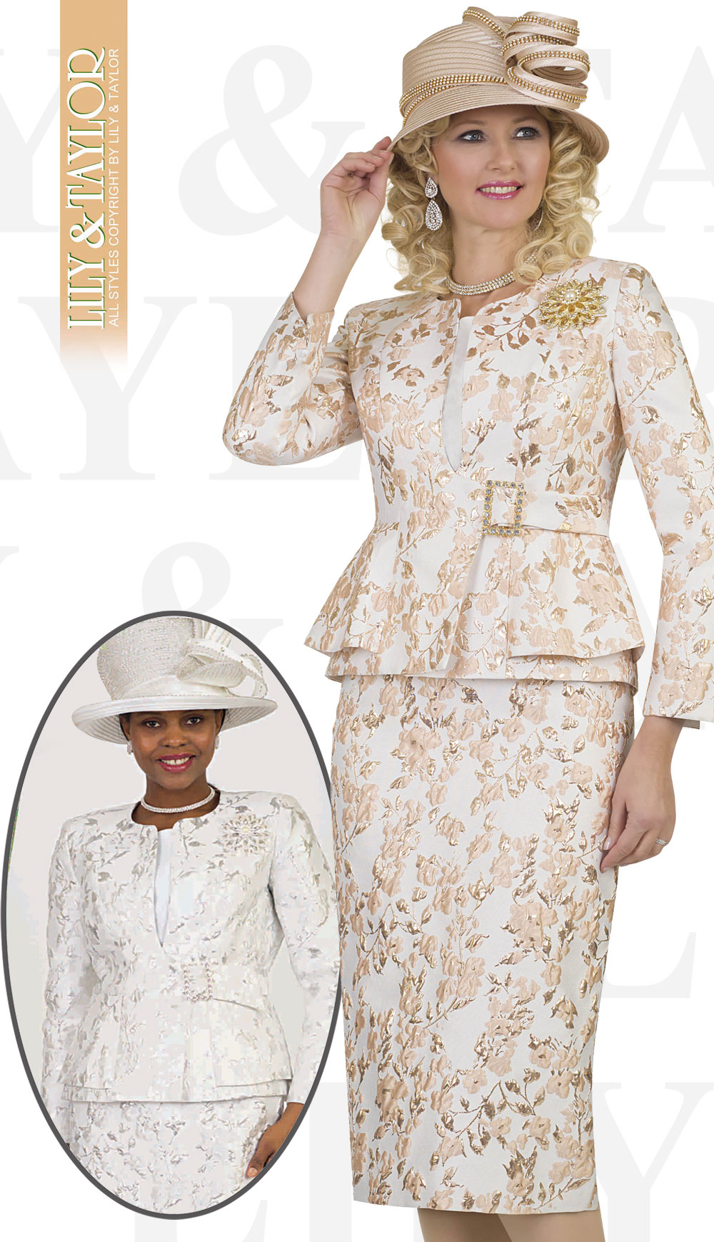 Style: Lily And Taylor 4518-GO ( 3pc Novelty Church Suit With Brooch )-Hat