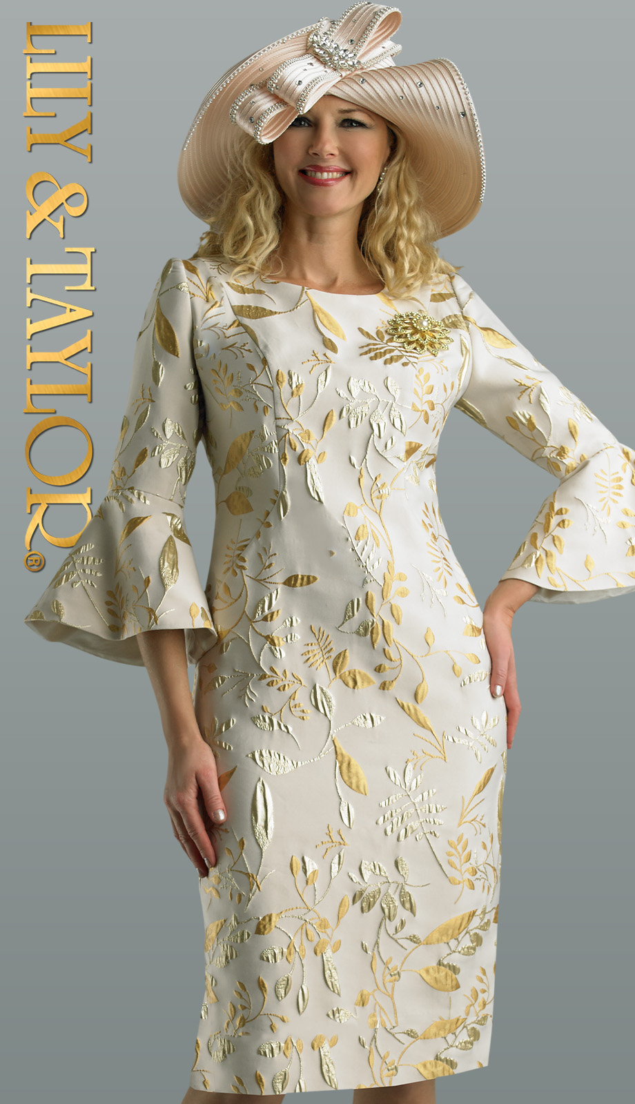 Style: Lily And Taylor 4659-H ( 1pc Novelty Ladies Church Dress With Peplum Sleeves And Detailed Leaf Embroidery )-Hat