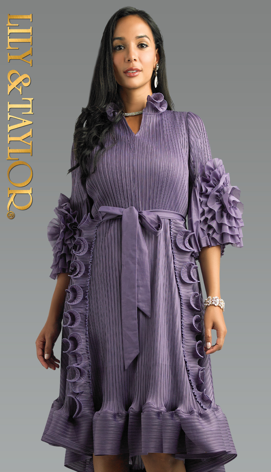 - 1pc Full Pleated Ruffle Dress With High-Low Bottom Brings Out The Power Of Layering And Texture Through Its Fantastic Ruffled Sleeves That Mimic Floral Arrangements And Trims Of Column Motifs