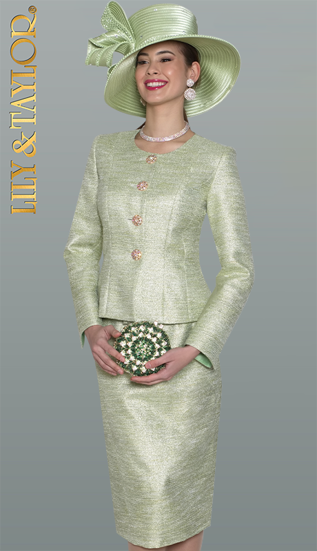 - 2pc Elegant Shimmer Novelty Skirt Suit With Rhinestone Buttons