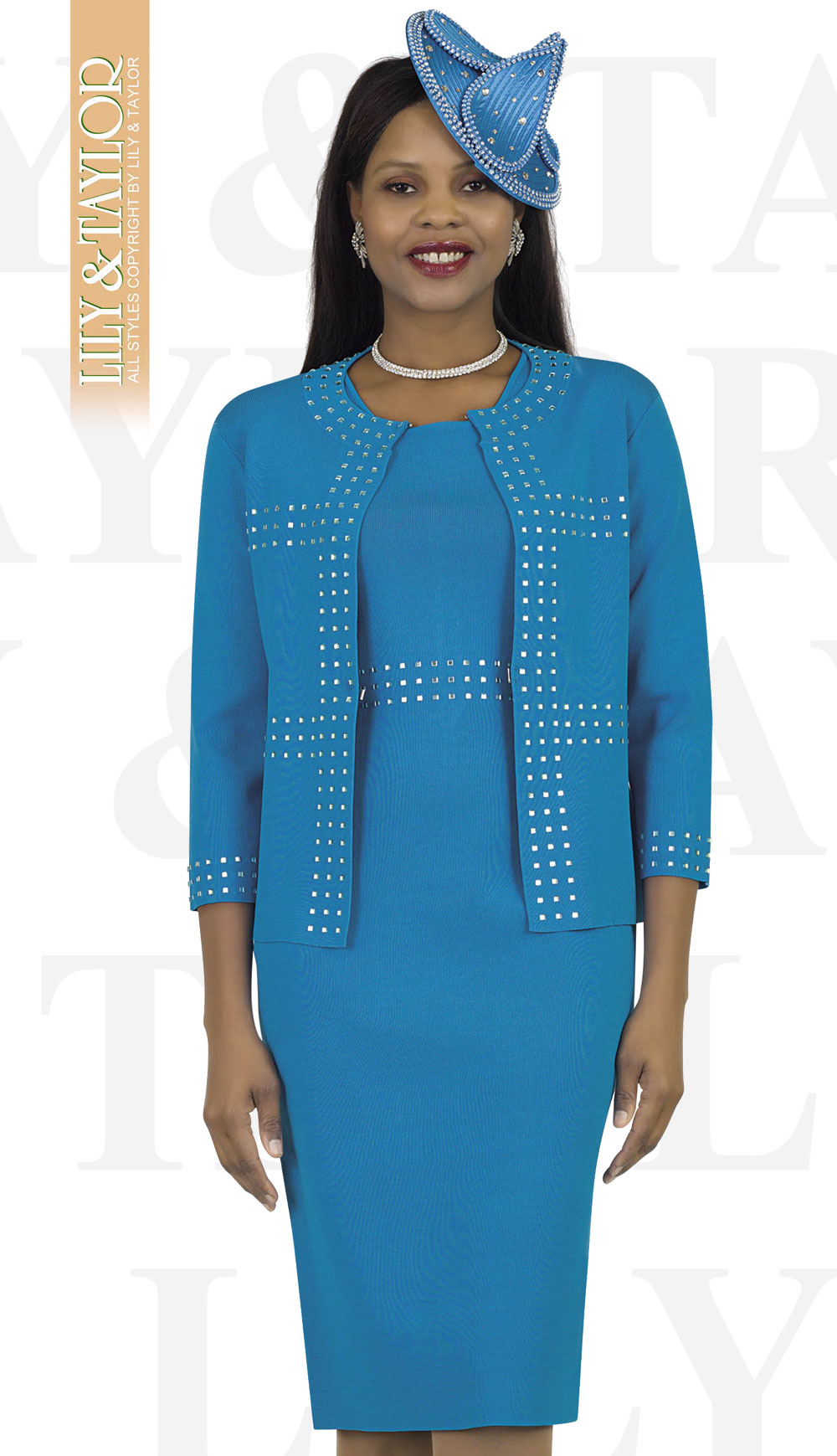 Style: Lily And Taylor 661-TU ( 2pc Ponte Knit First Lady Dress And Jacket )-Hat