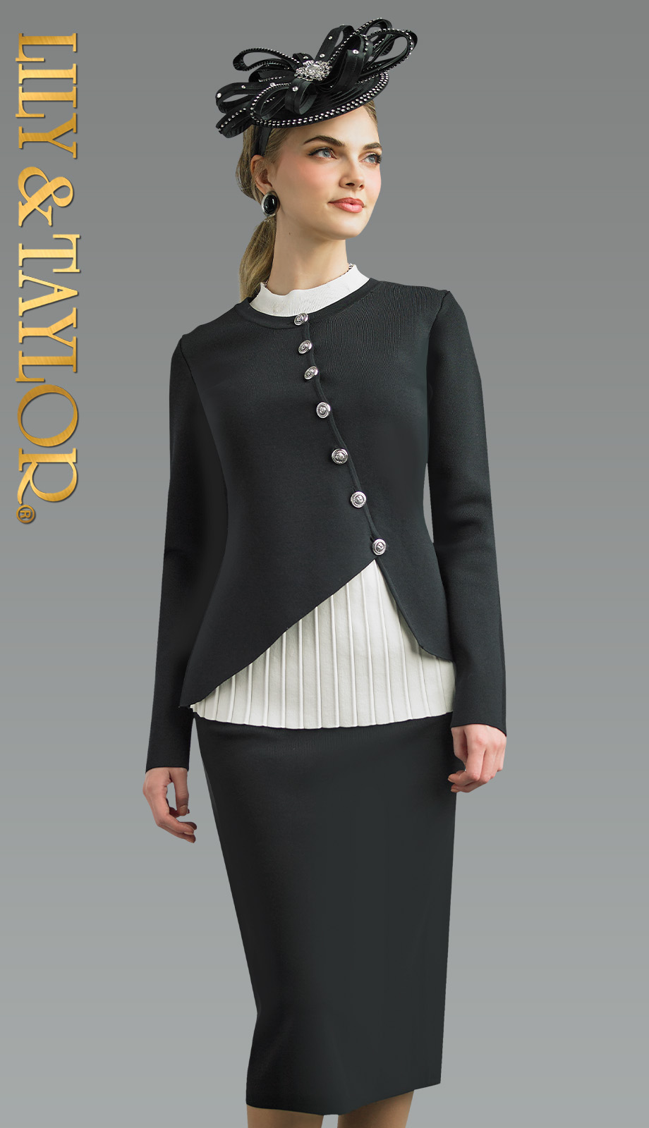 - 3pc Fine Knit Skirt Suit With Unique And Standout Piece That Showcases Contrasting Pleated Camisole