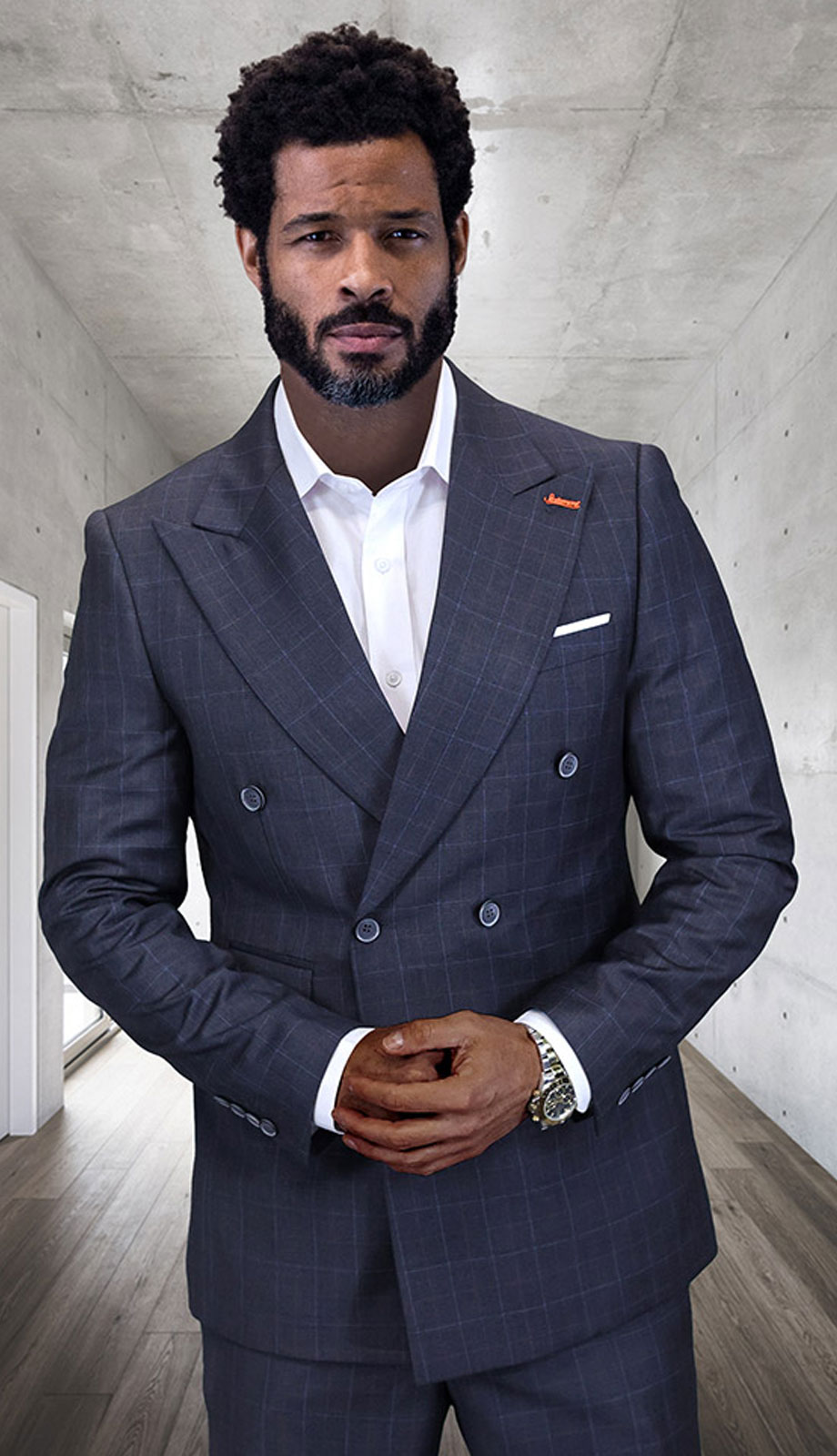 - 2pc Tailored Fit Double Breasted Suit With Flat Front Pants