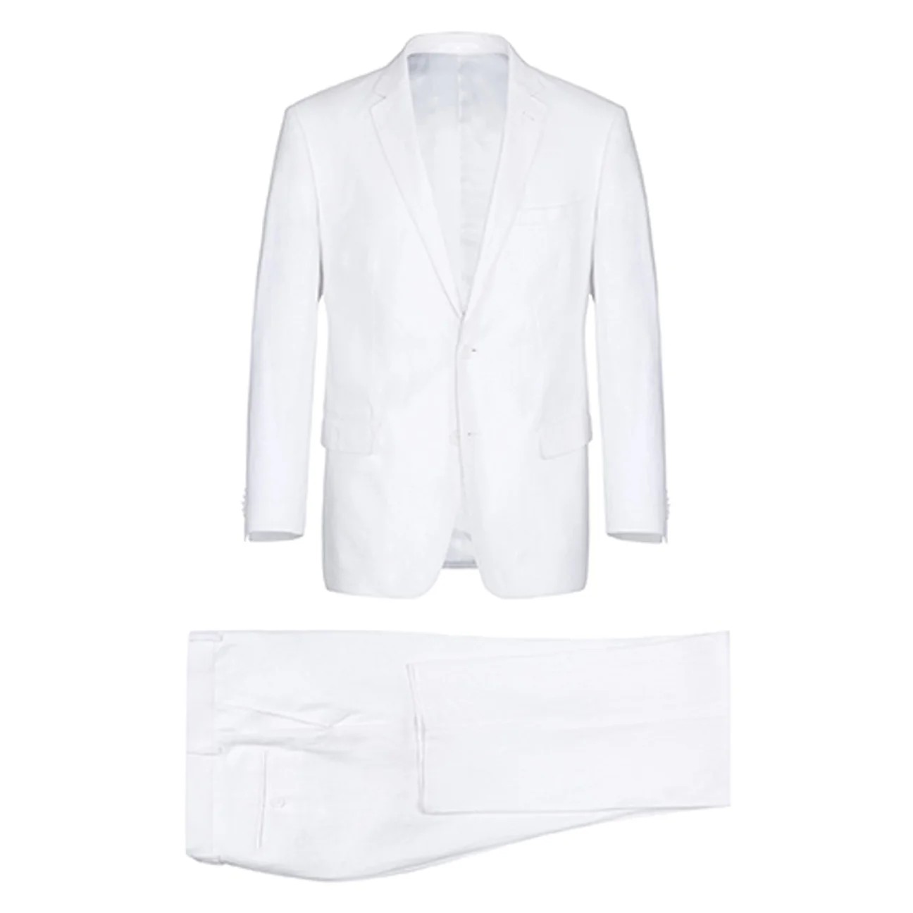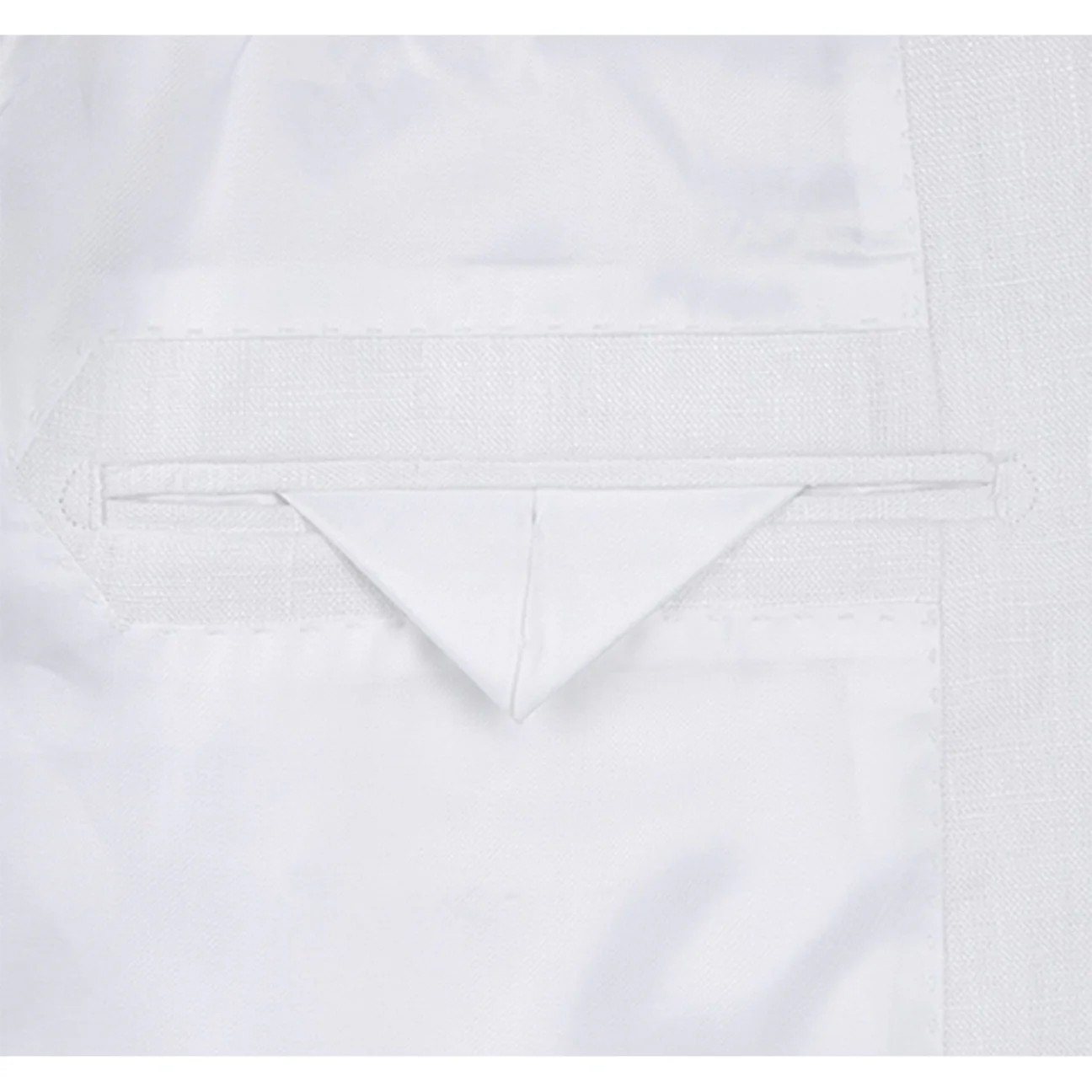 Style: Renoir Men's Suit 601-20-WHT (Notch Lapels White Solid Linen Suits)