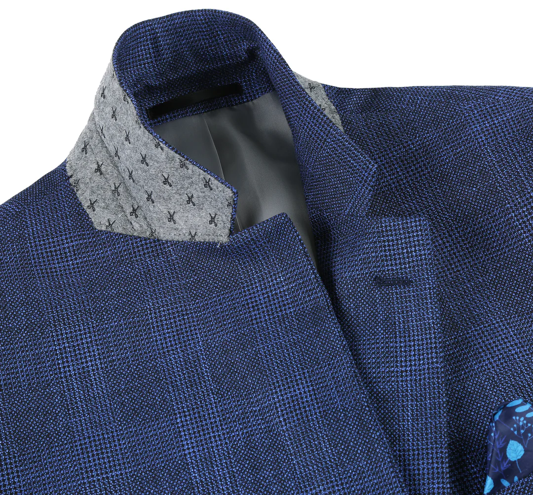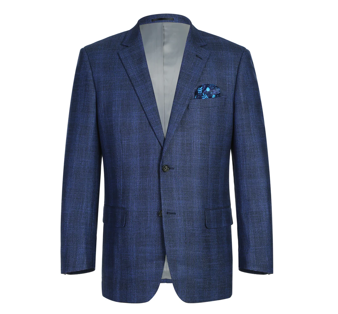 Style: Renoir Mens Blazer 294-5-NP ( Classic Fit Single Breasted Two Button Navy Big-Plaid Suit Jacket Blazer )