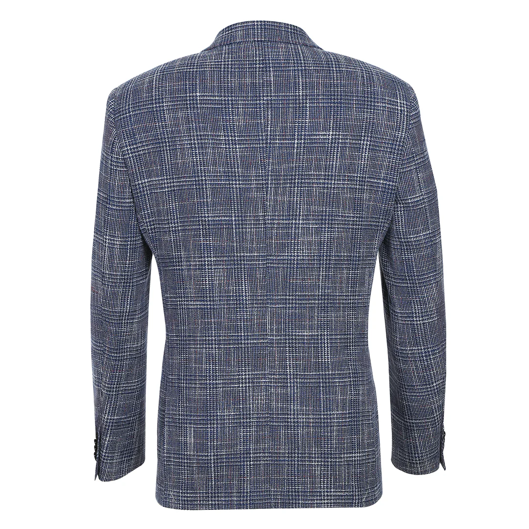 Style: Renoir Mens Blazer 563-3-BLUE ( Slim Fit Wool Blend Stretch Checked Blazer )