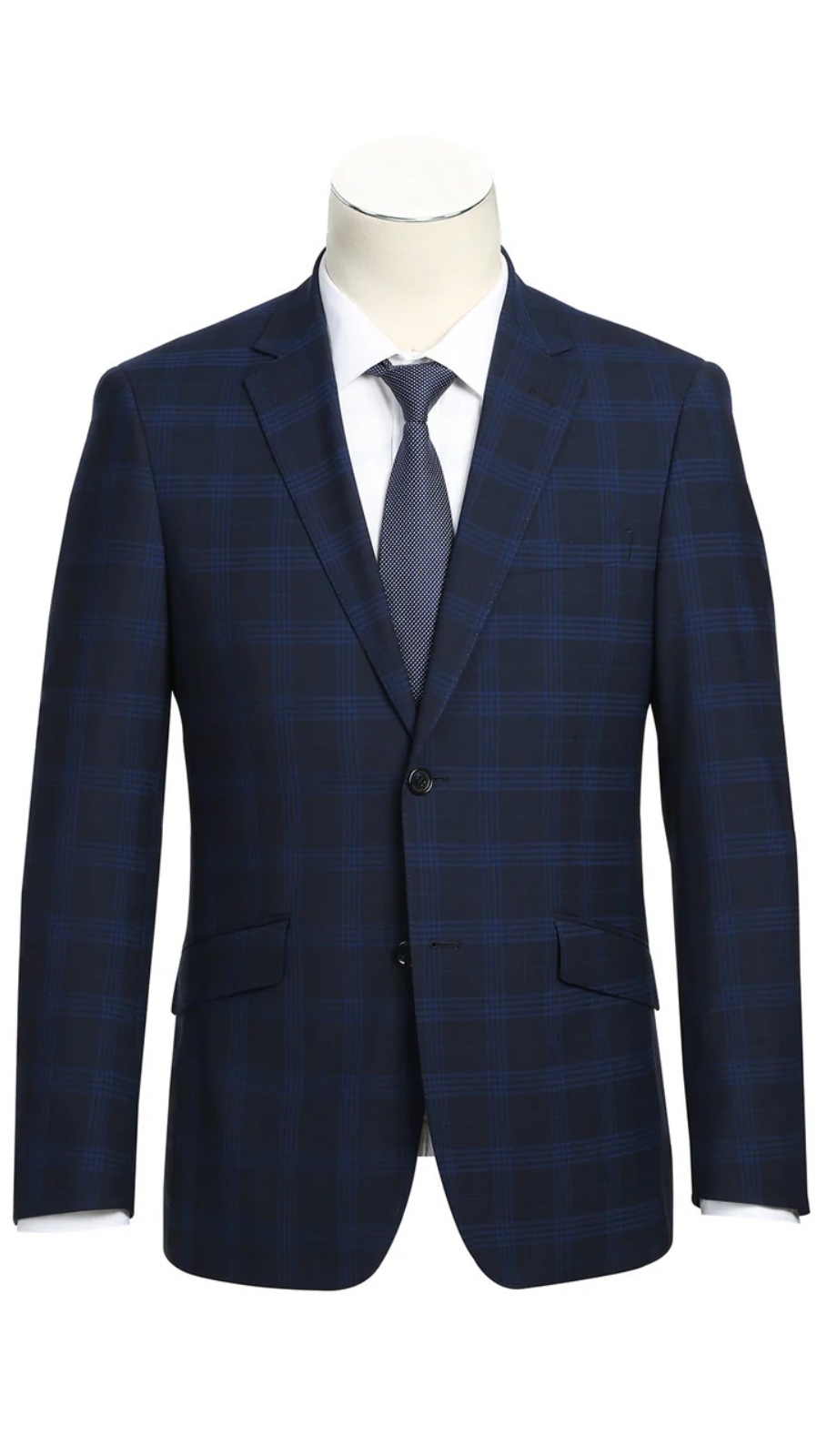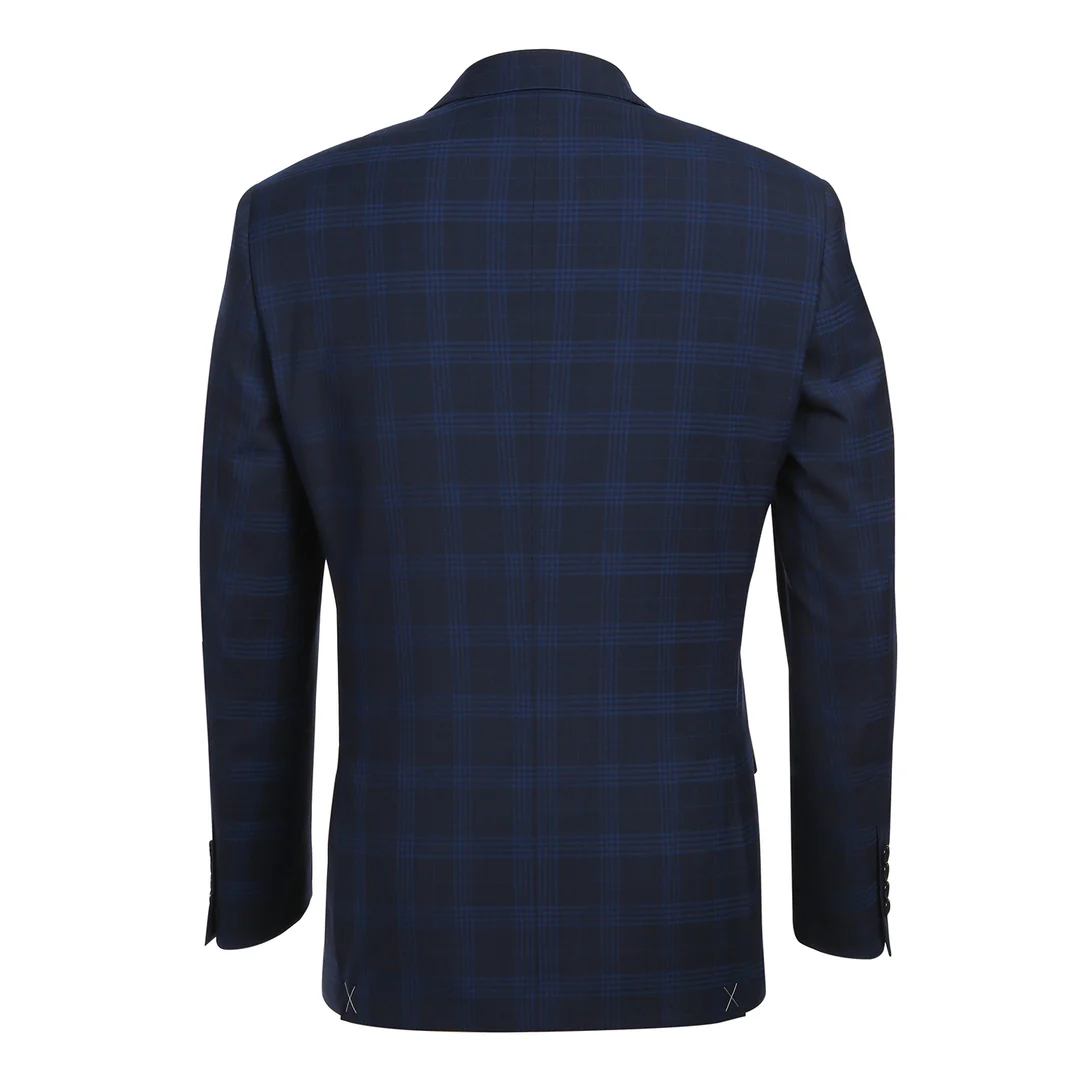 Style: Renoir Mens Suits 564-3-DARK-BLUE ( Slim Fit Wool Blend Stretch Checked Suit )