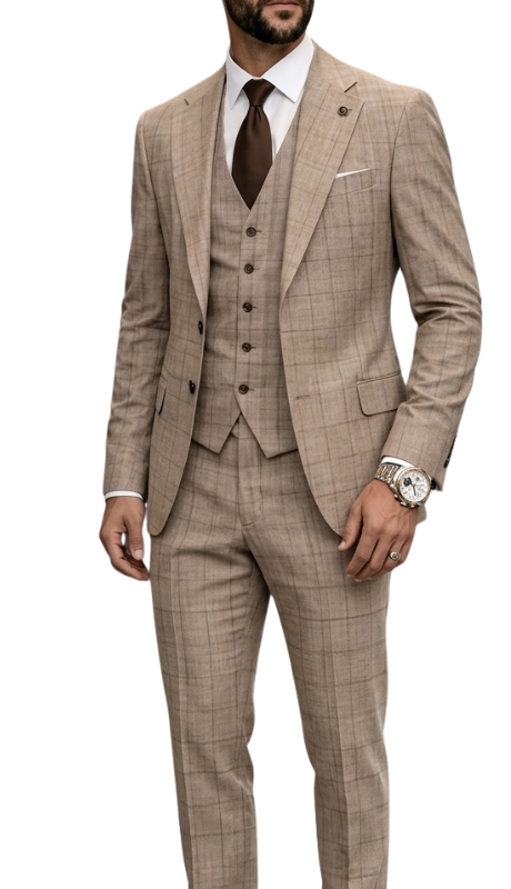 Style: Statement BOTURA-CAMEL-3PC Mens Suit