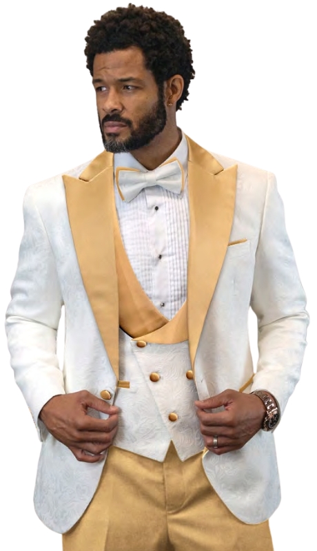 Style: Statement HILTON-GOLD-3PC Mens Tuxedo