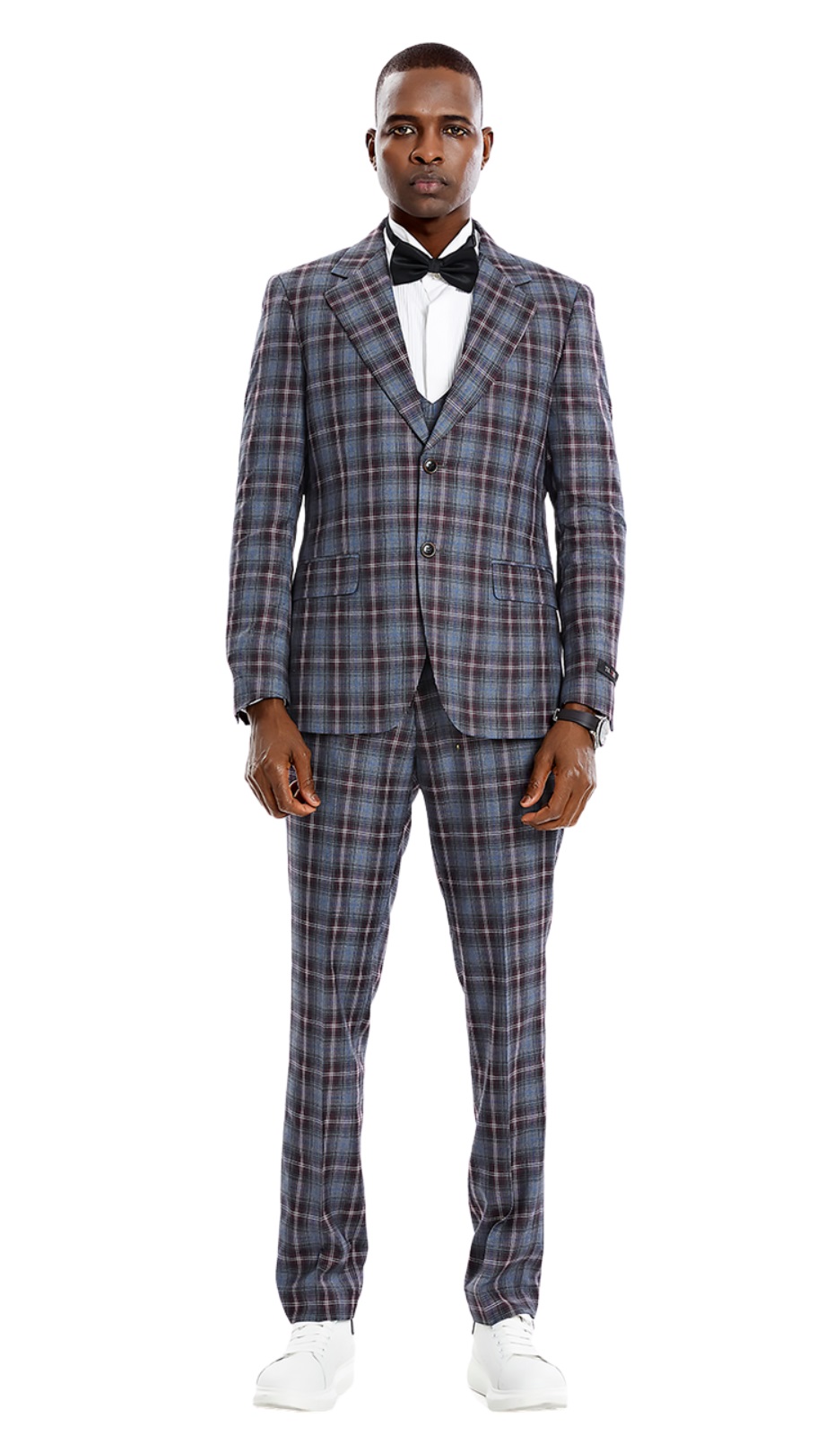 Style: Tazzio Mens Suit-M373SK-04-MAROON GREY