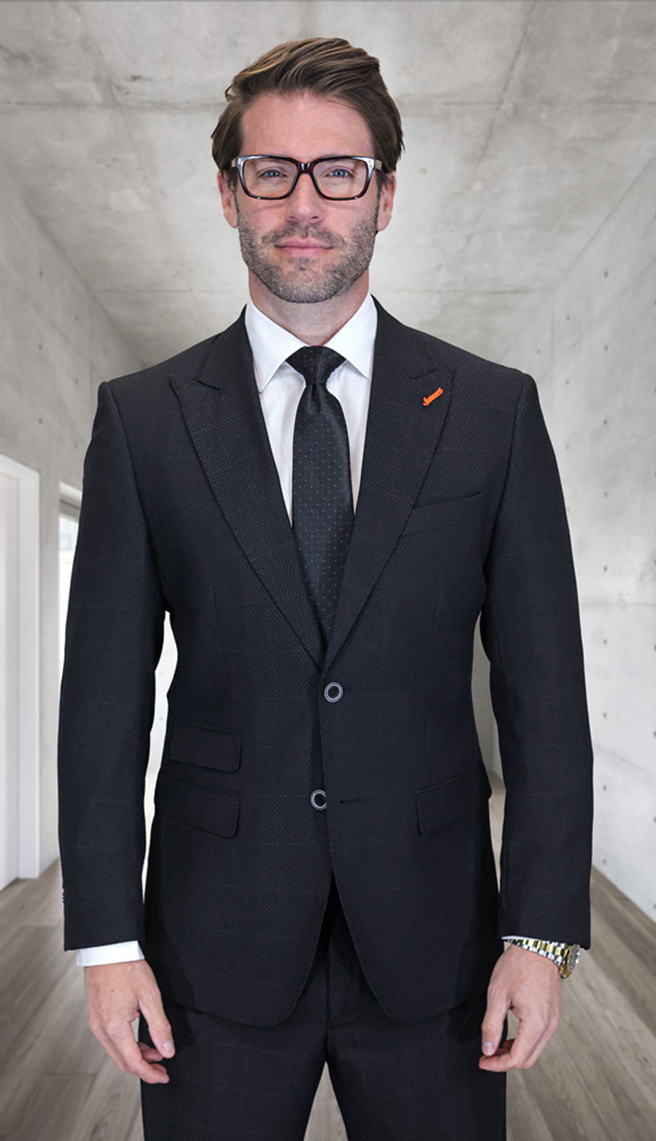 Style: TRIESTE-BLK-QO 3pc MensStatement Suit