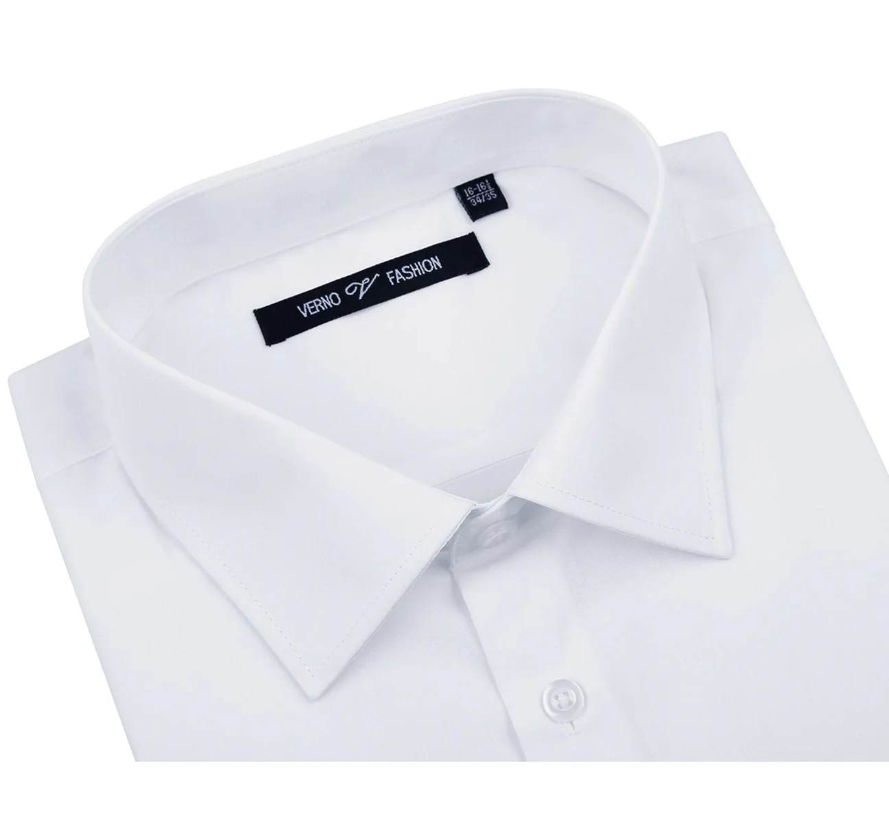 Style: Verno Mens Shirt TC01-WHT ( Classic Fit Long Sleeve Spread Collar Dress Shirt )